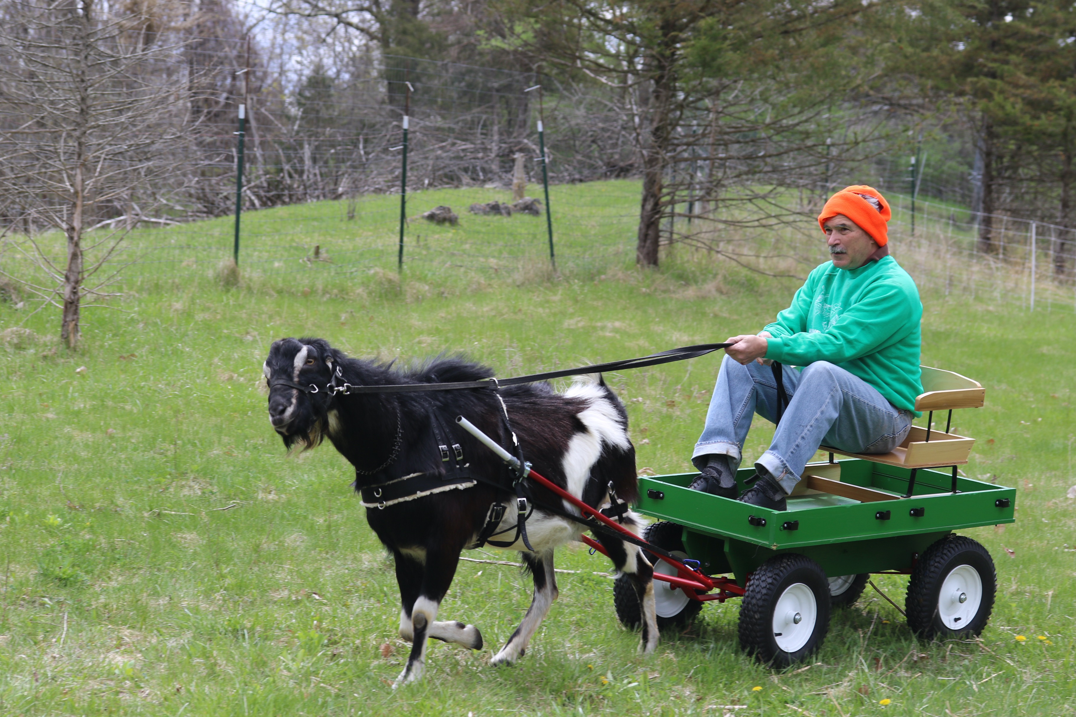 Introducing visitors from California to Goats in Harness, Kenny in Oxfordshire taking them for a ride.