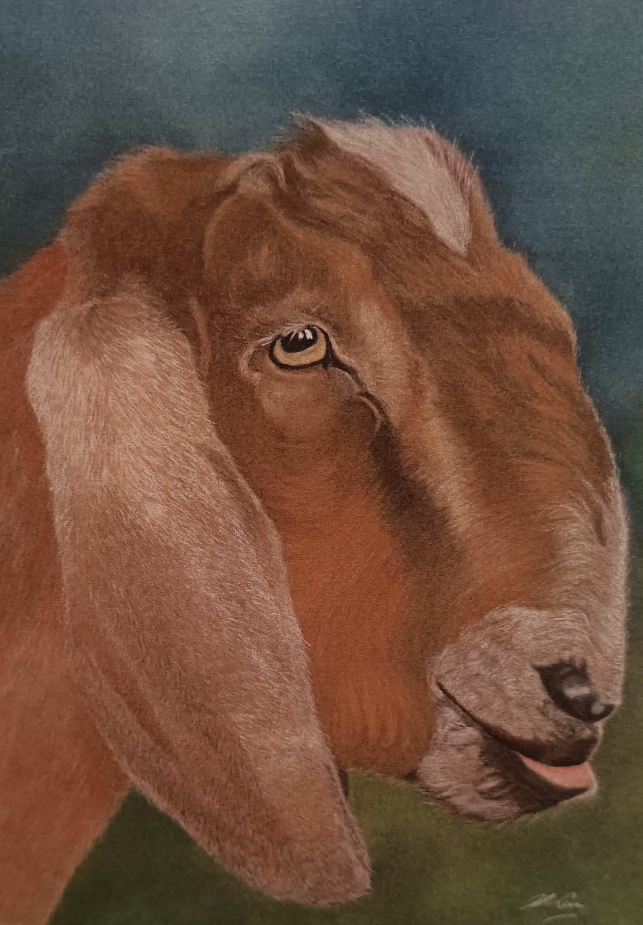 The eyes of an animal are really important so getting a good pose with a clear view of the eyes is crucial which is why this photo was chosen for the portrait, whilst other photos taken outdoors gave the accurate colouring.