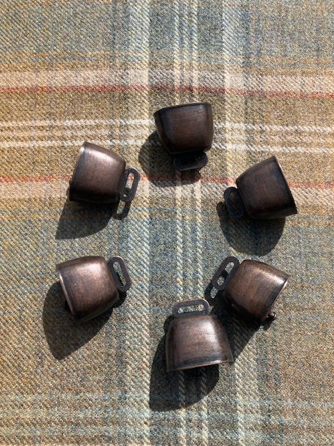Antiqued red copper bells. Good ring to them, can be attached to collar or
