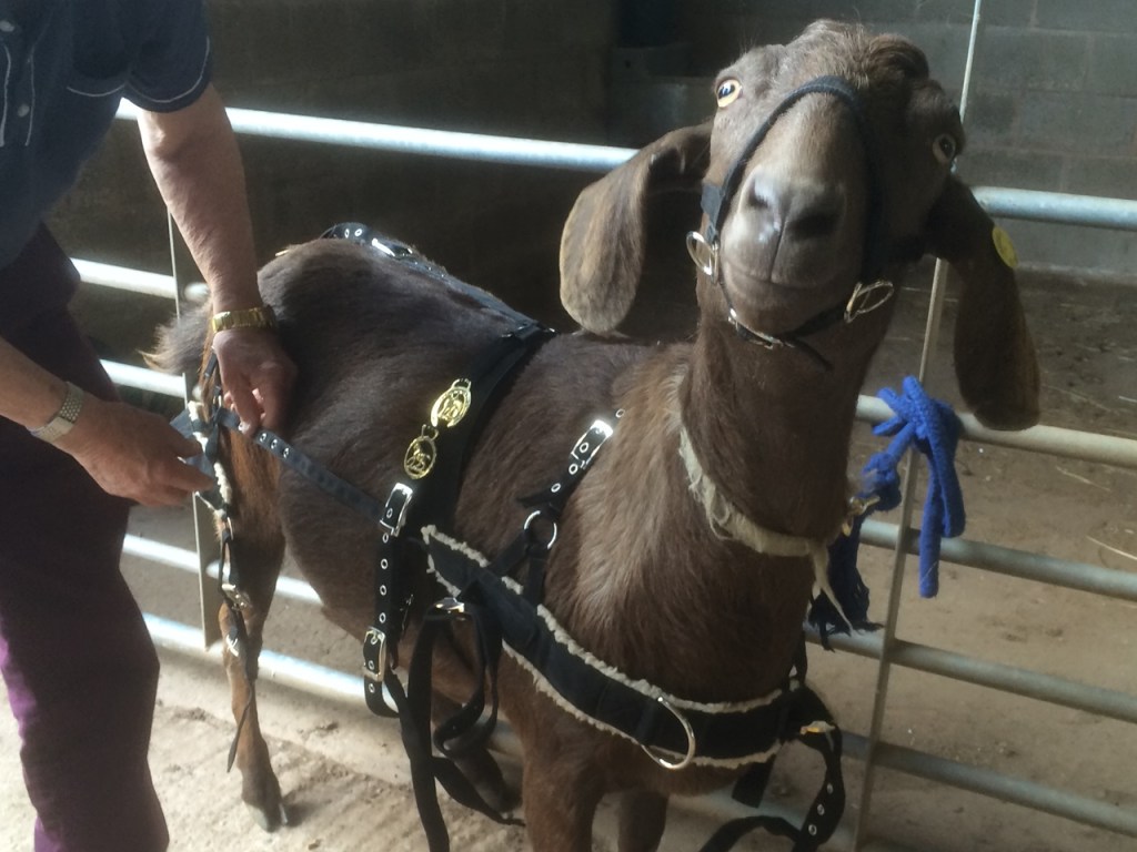 Some goats enjoy coming along to the show either with or without pulling a carriage or carrying a backpack. Any breed is welcome, large or small, pure breed or cross.