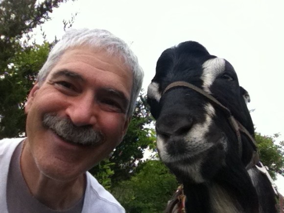 George has a small farm where he keeps goats and chickens including Rodrigo pictured. George lives in Amenia New York.