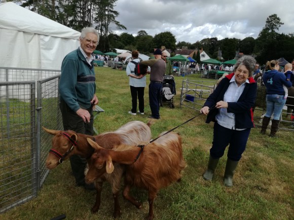 Jean is President of the HGS. Jean has shown various breeds of goat at shows up and down the country for many years. This is Jean with Emba her Golden Guernsey at Frampton Country Fair in 2018.