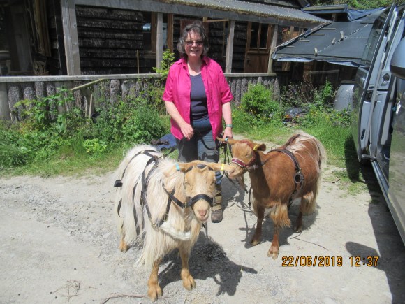Liz with her goats Bertie and Phil June 2019.