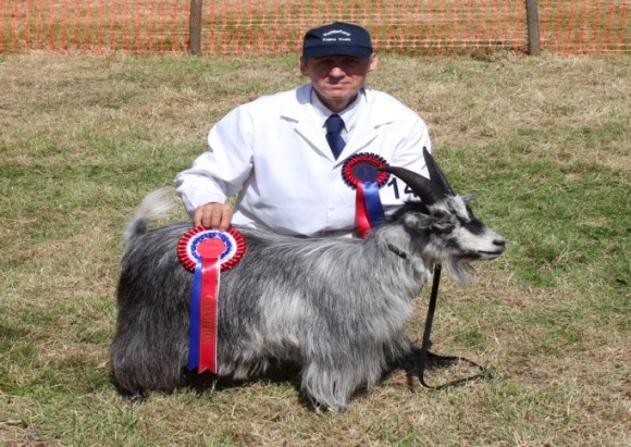 Paul our Publicity officer with his goat Hedd at Machen Show Wales 2015. Paul has been very successful in his partnership with Hedd at regional and national shows. Paul did not breed Hedd but he moved into Paul’s herd when he was 2 years old. A few years later his previous owner attended a show, Paul offered her the opportunity to show him. “No” she said, “he never showed for me like he does for you, look at him, where ever you walk his eyes are following you”. Paul and his goats attend many agricultural shows and events now, educating people of pygmy goats. Hedd is rarely, if ever, on a lead, he follows Paul like a devoted dog. Sadly he is aging and Paul knows that each day is a bonus.