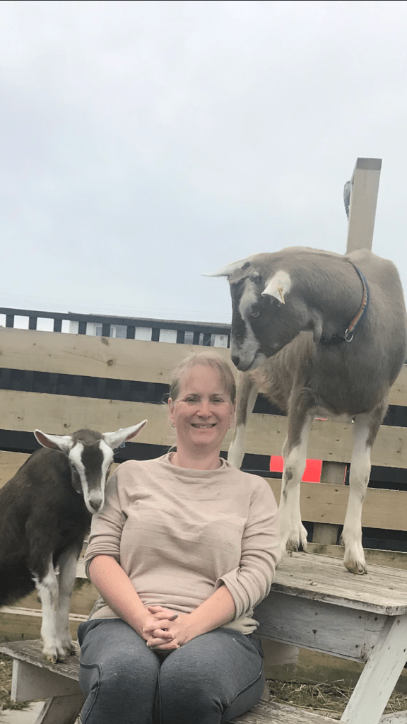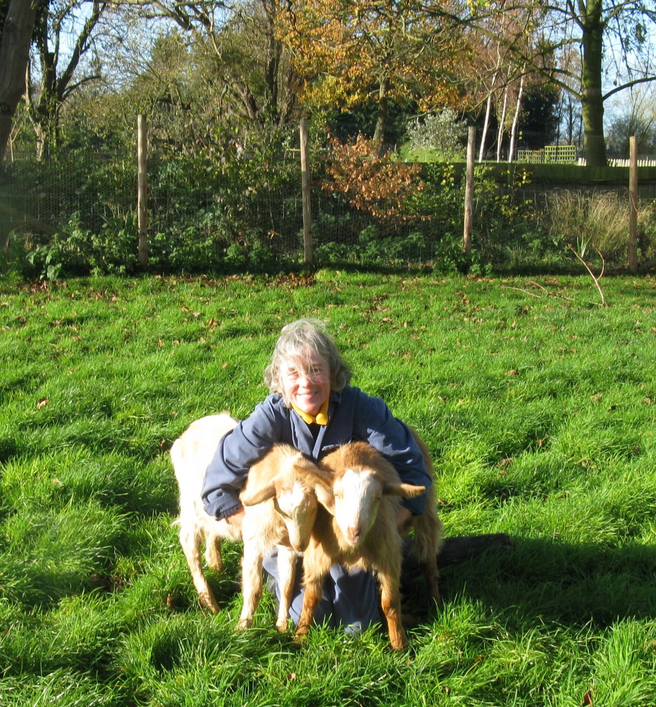 Kathryn Minchew with Toby and goats Joan & dawn
