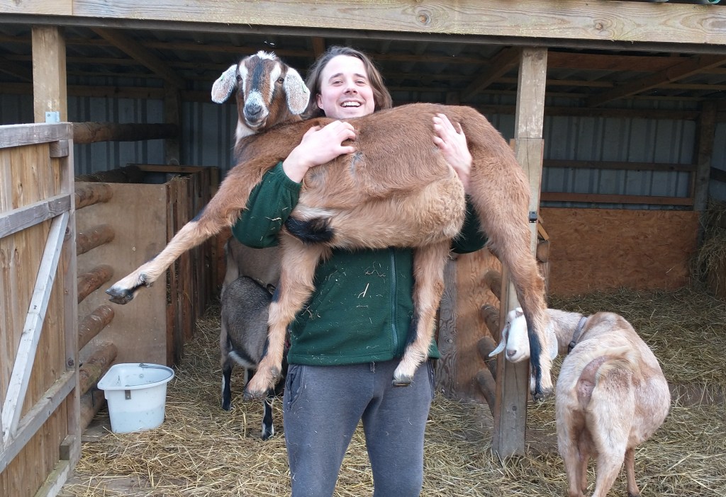 So I collected my very wild, 12 week old Toggenburg baby and one year later we are now inseparable.