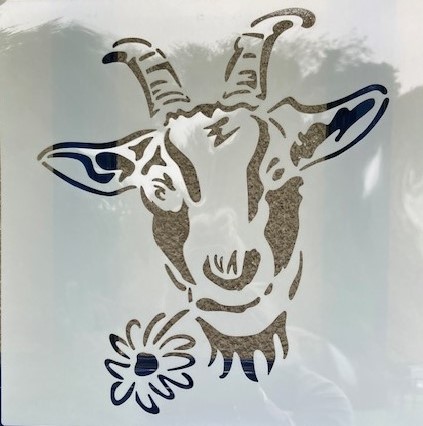 Acrylic printed goats on 60×60 inch square table cloth.